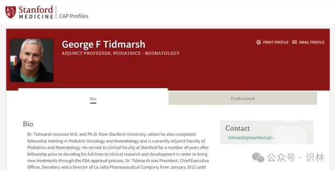 FDA官网通知中将Tidmarsh描述为斯坦福大学的教员(faculty member),但从其学术履历看,他实际上是一名“兼职教授”(adjunct professor),最为活跃的领域还是作为药企创始人和管理者。