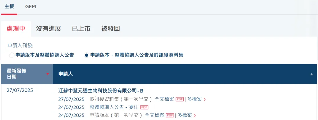 7月27日,港交所官网显示,江苏中慧元通生物科技股份有限公司(以下简称:中慧元通)通过港交所聆讯即将上市,中信证券和招银国际为联席保荐人。