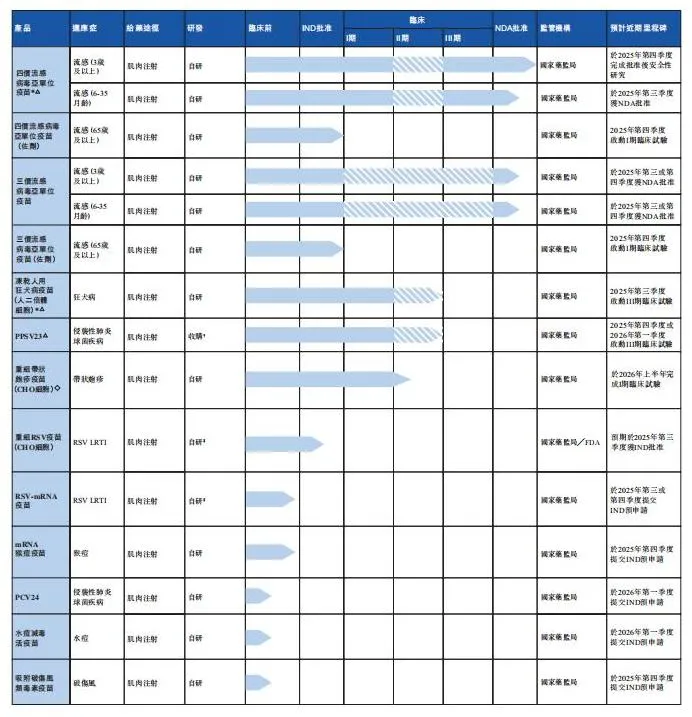 截至目前,中慧元通具有两款核心产品:(i)四价流感病毒亚单位疫苗(2023年5月获国家药监局批准用于三岁及以上人群,商品名慧尔康欣),是目前在中国获批的首款且唯一一款四价流感病毒亚单位疫苗,投标价格为每针319元,针对6-35月龄的NDA预期将于2025年第三季度获批;(ii)在研冻干人用狂犬病疫苗(其使用人二倍体细胞开发,具有良好的安全性)。
