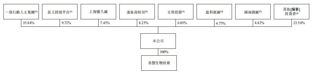 截至最后实际可行日期,(i)由安有才先生、江苏粜宇(一家由安先生及其配偶分别拥有70%及30%权益的公司)及何一鸣先生组成的一致行动人士集团共同拥有约35.84%的股份权益,根据一致行动人士协议,于股东会或董事会会议上一致表决前,何先生须与安先生及江苏粜宇达成一致意见,如各方未能达成一致,何先生须遵循安先生及江苏粜宇的指示;及(ii)江苏粜宇凭藉其作为各员工持股平台的普通合伙人的角色,被视为于员工持股平台持有的股份中拥有约9.72%权益。因此,一致行动人士集团及员工持股平台构成中慧元通控股股东集团,截至最后实际可行日期合共持有约45.55%的股份。