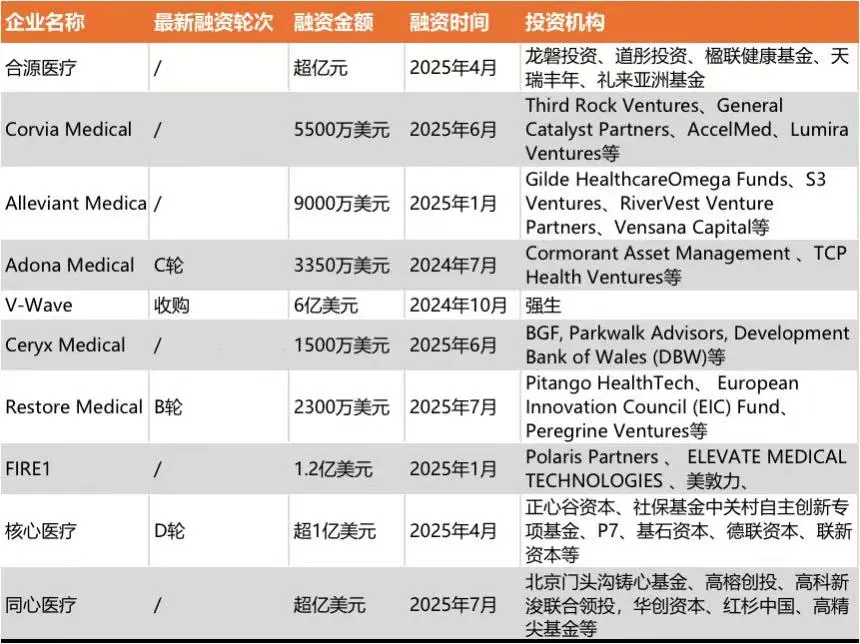 近期,就有合源医疗、核心医疗、同心医疗、Corvia Medical 等十余家公司相继完成融资,细胞治疗、心室辅助装置、仿生起搏器、心房分流器、心衰监测等多条技术路线同步突破。