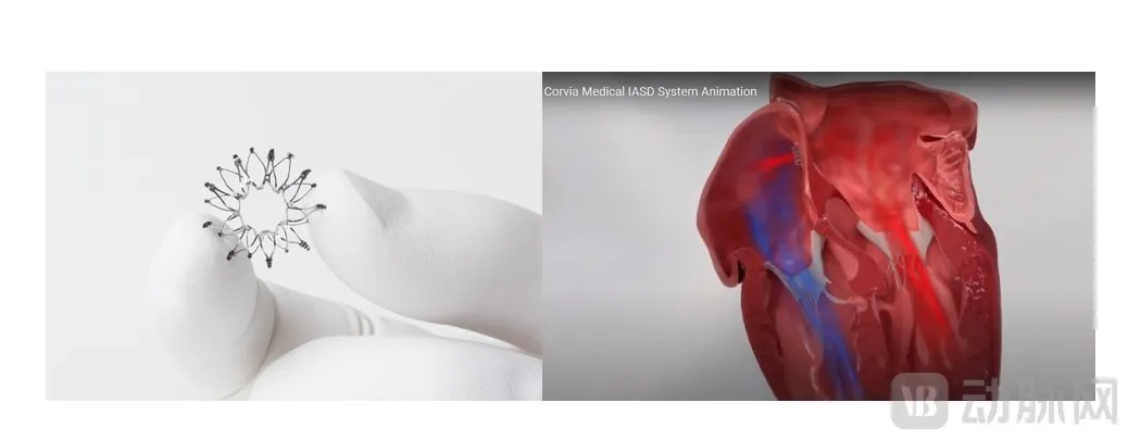 Corvia Medical心房分流器及植入示意图