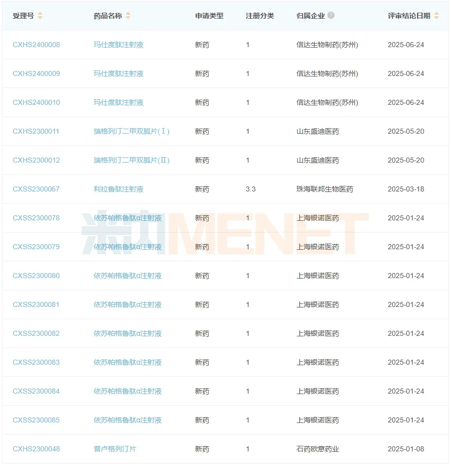 日前,诺和诺德的司美格鲁肽注射液新适应症获批,福安药业烟台只楚药业的硫辛酸片、湖南及正医药科技的二甲双胍恩格列净片(Ⅰ)、深圳奥萨制药的恩格列净片、鲁南贝特制药的利格列汀片等均以新分类报产先后获批上市。