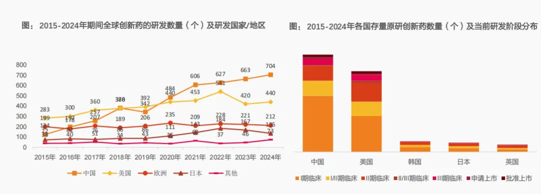 二是中国企业自研创新药临床存量数量同样位居第一。