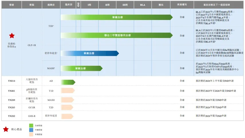 其管线目前包括正在开发用于治疗肥胖和超重及代谢功能障碍相关性脂肪性肝炎(MASH)的核心产品依苏帕格鲁肽a,以及五款处于临床前阶段的候选药物。