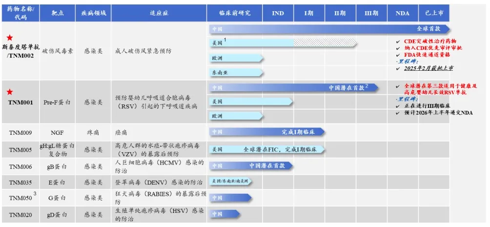 (i)斯泰度塔单抗注射液(TNM002,商品名:新替妥®),已于2025年2月在中国获批上市,这是抗感染领域首个被CDE认定为突破性治疗药物的国产创新生物药,也获得了FDA“快速通道(Fast Track)”资格;