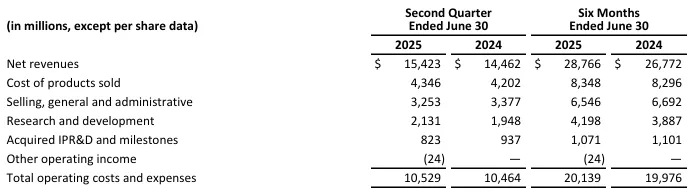7月31日,艾伯维公布了2025H1业绩,上半年总营收287.66亿美元,同比增长7.4%。自免、神经科学、肿瘤、美容以及眼科各大业务分别带来138.95亿美元(+12.6%)、49.65亿美元(+20.3%)、33.09亿美元(+4.2%)、23.81亿美元(-9.8%)、10.20亿美元(-4.8%)的收入。