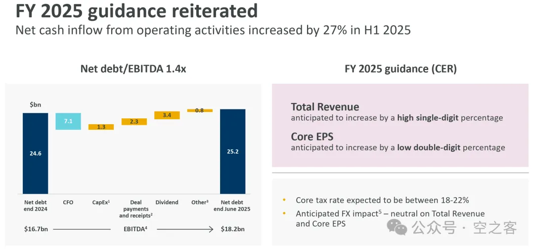 全年指引基本维持不变,收入同比增长预计5-10%、EPS同比增长预计10-15%。