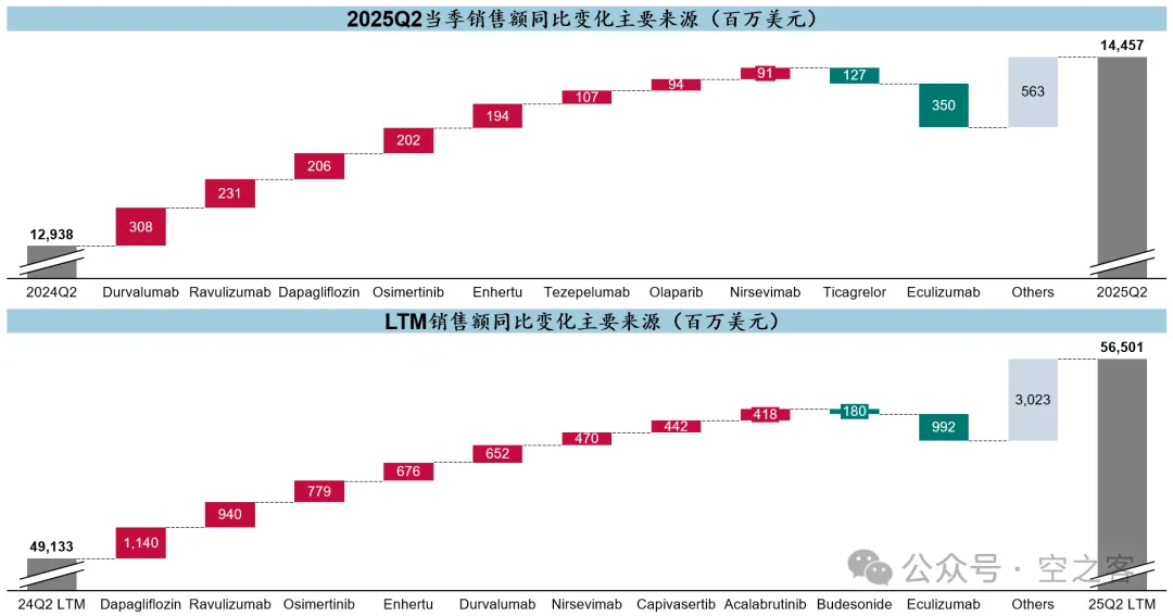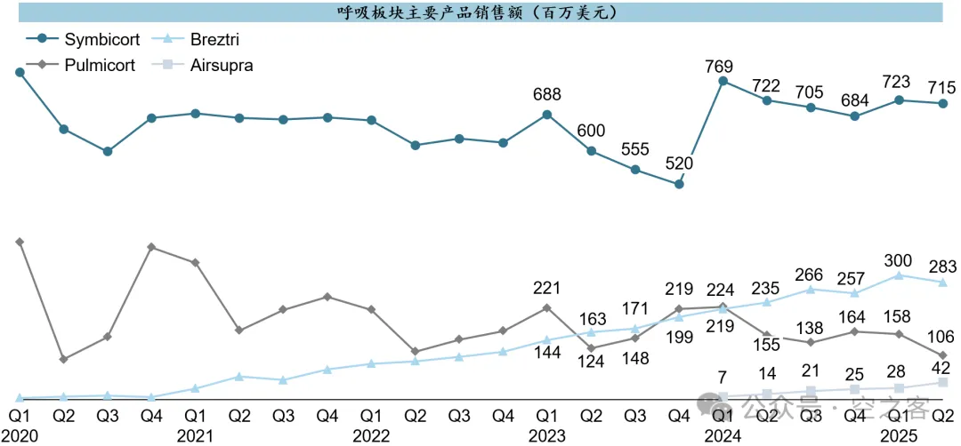 吸入制剂板块的Symbicort和Pulmicort等传统强势品种依然保持平稳,Breztri在LTM累计$1.1b。