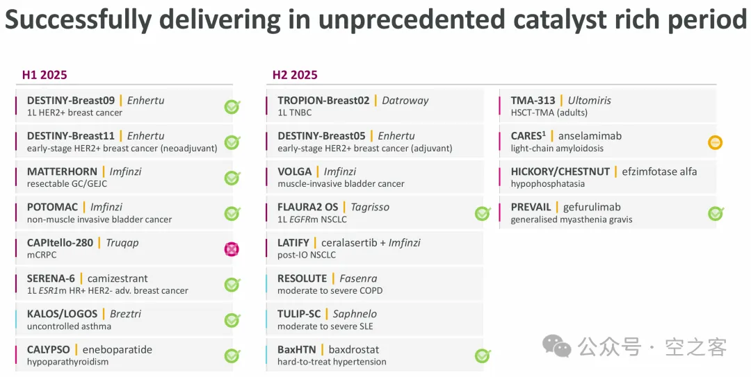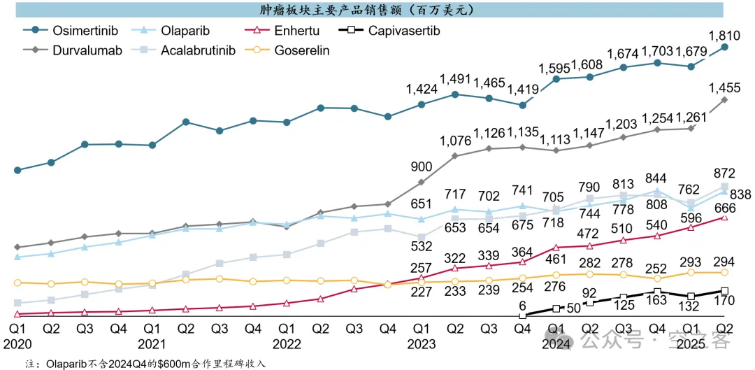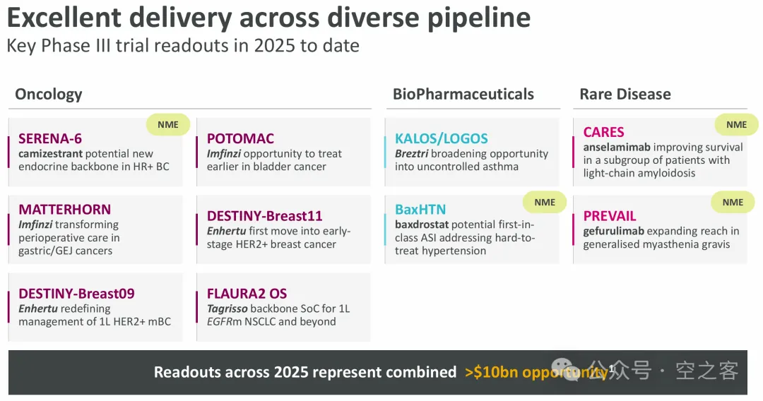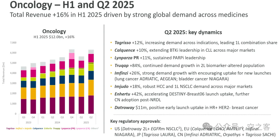 前两天还在感叹Roche从前“肿瘤一哥”的宝座滑落后的惨淡(参见【医苑观畴】2025年二季度海外药企进展更新:罗氏ROG),反观如今的AZN在肿瘤的布局堪称军容壮盛,既有势如破竹的尖兵,又有阵法严整的中军,还有力挽狂澜的奇兵。