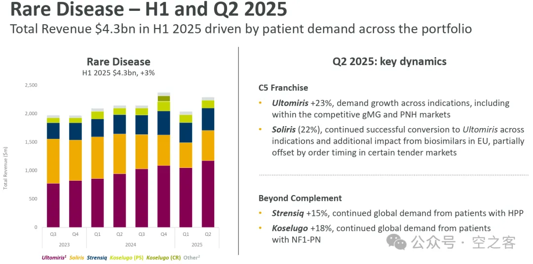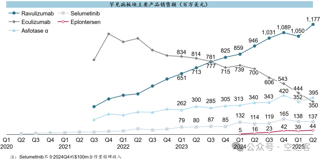 收购Alexion得到的C5 franchise近期愈发不景气,gMG和PNH等重要适应症的竞争日趋激烈、再加上Part D的重拳,Ravulizumab增长明显遇到天花板,而Eculizumab在生物类似药上市后持续下滑,导致二者合计LTM累计销售额下滑到$6.3b,看起来跟当初$39b的收购对价渐行渐远;至于刚获批的TTR ASO产品Eplontersen,在ATTR-CM适应症之前估计销售额都还上不得台面。