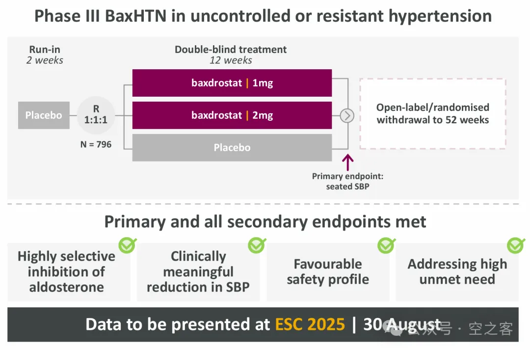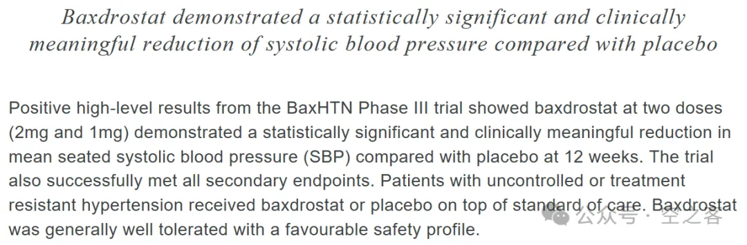 心血管板块也出现重磅进展,当年以$1.8b收购Cincor得到的ALDOS抑制剂Baxdrostat,在三期临床BaxHTN试验中取得积极结果,在给药12周后,1/2mg两个剂量组相比安慰剂组都对收缩压有显著降低,且所有次要终点也都达到。在很多年都没有出现新机制药物的高血压领域,Baxdrostat无疑拥有了超重磅的潜力,甚至意味着AZN集齐了降糖(oGLP-1, SGLT-2)、降脂(oPCSK9, Lp(a))、降压(ALDOS)等全套七龙珠。