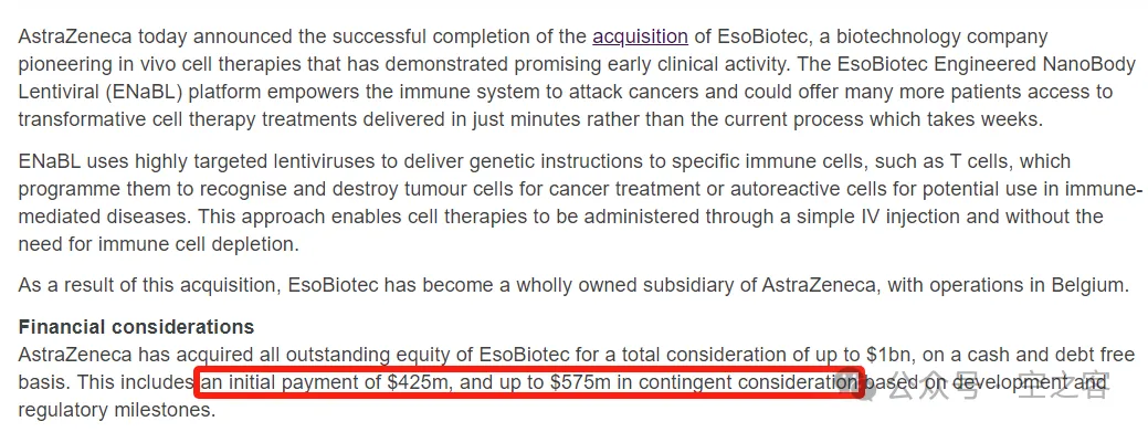 本季度最重要的BD交易,当属以$425m upfront + $575m milestone收购invivo CAR-T平台企业EsoBiotec,也打响了MNC争夺这一领域的第一枪。