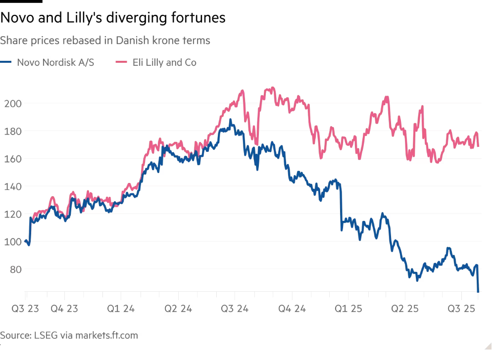 诺和诺德陷入动荡之前,该公司曾取得过一些巨大的成功——去年6月,由于减肥药需求猛增,其股价在三年内上涨了近300%。