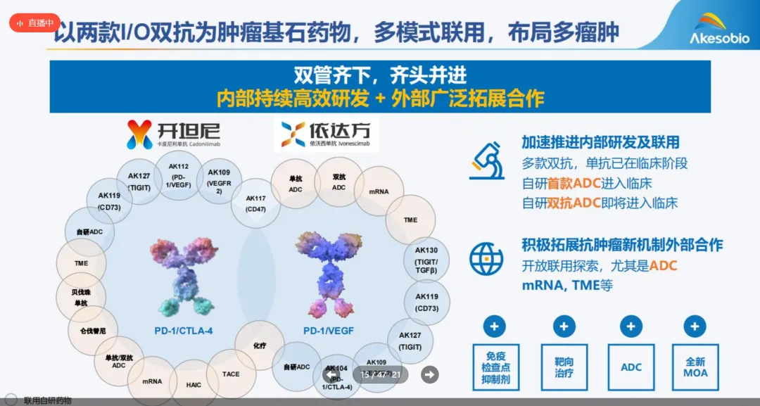 上个月康方的首款双抗ADC药物AK146D1完成首例给药后(康方TROP-2/Nectin-4双抗ADC启动澳洲一期临床),提出了“IO+ADC”2.0概念,但是基于内部ADC药物项目研发还处于早期,首个和D-1/VEGF双抗依沃西为外部项目。