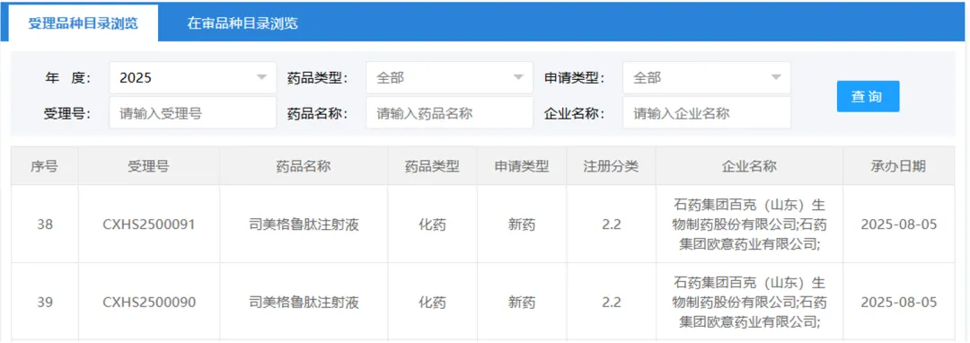 8月5日,国家药品监督管理局(NMPA)药品审评中心(CDE)官网显示,石药集团的司美格鲁肽注射液上市申请已获受理。