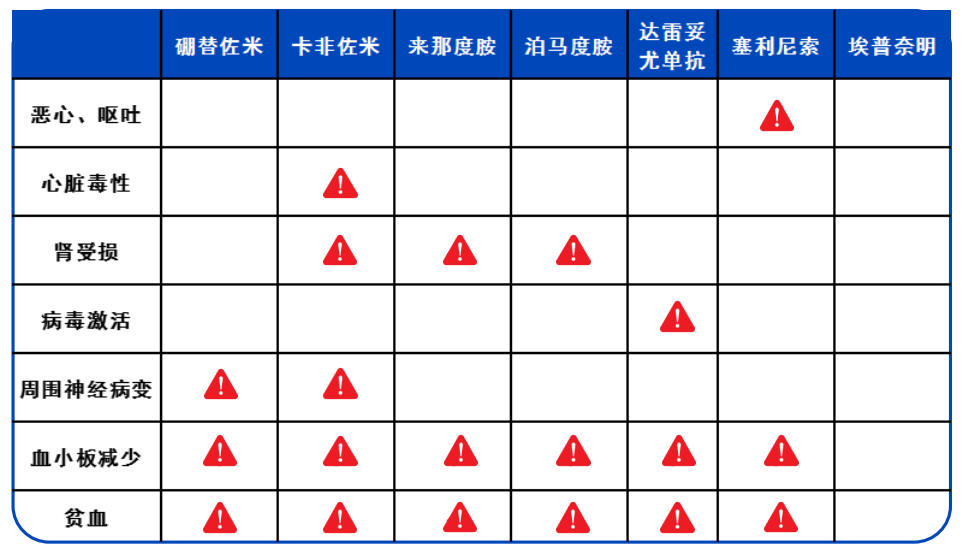 1)安全性良好-卡非佐米治疗出现的心脏、肺、肾、胃肠、神经毒性,沙艾特主要不良反应为肝毒性,多为轻度,大部分患者无需干预即可恢复,患者具有更好的耐受性;