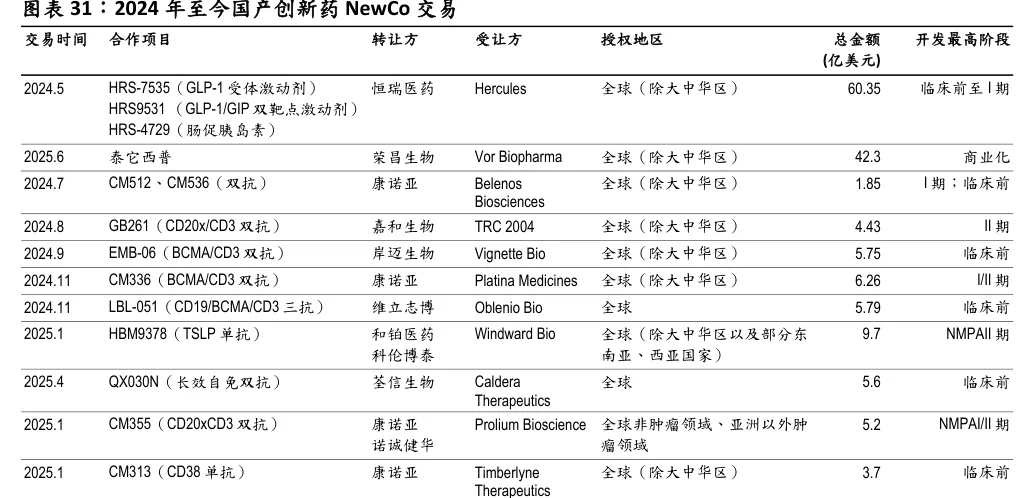 以恒瑞医药为始,国产创新药NewCo不断落地,已经成为中国创新药出海的重要模式之一。今年前六个月,NewCo 交易金额占所有出海交易总金额的比例达12.4%。