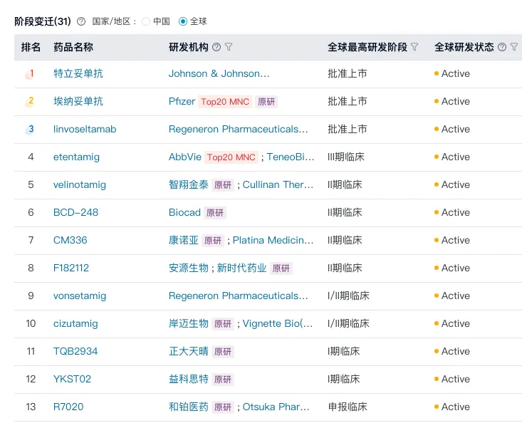 眼科领域的Ang2/VEGF双抗,凭借未被满足的治疗需求和良好的临床前景,有可能成为双抗出海的新突破口;血液瘤与自免双向拓展的CD3/BCMA、CD3/CD20、CD3/CD19三大TCE赛道,亦在快速兑现商业价值,并构建起更丰富的BD筹码;而在实体瘤领域,无论是TCE靶点如DLL3、CLDN18.2、EGFR,还是双通路阻断如EGFR/c-Met、PD-(L)1/多免疫组合,国产创新管线都在“跑步前进”……