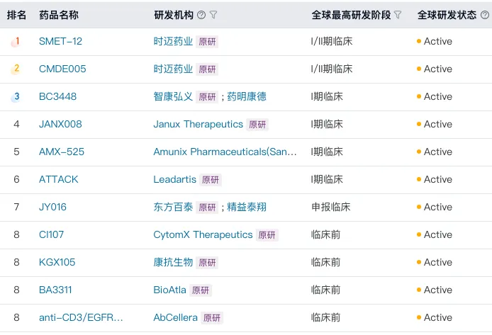 在I期临床中,SMET-12联合特瑞普利单抗及化疗治疗EGFR突变且TKI耐药的患者时,ORR达到了41.7%,DCR为100%。其下一代CD3/EGFR双抗CMDE005进一步引入了遮蔽肽设计,通过封闭CD3在正常组织中的结合活性,有效避免了T细胞过度激活导致的毒副反应,为这类双抗的深入开发提供了更安全的路径。随着机制与数据的双重推进,国产EGFR双抗赛道或将迎来全新的发展机遇。