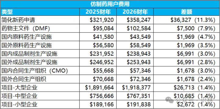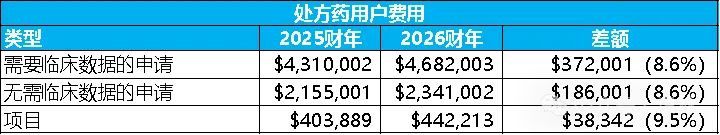 FDA在2026财年将收取的处方药用户费用(PDUFA VII)增长8.6%。这一增长主要源于FDA预计接收的原始申请数量增加,但与申办方的会议次数减少。