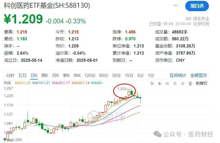 太平洋此岸,科创板生物医药ETF(588250)交易价格近期一度攀高至1.255元,机构报告预测板块仍有40-60%上行空间。随着恒瑞医药HRS-9821等创新药在海外临床推进,中国Biotech正从资本狂欢走向实力验证。
