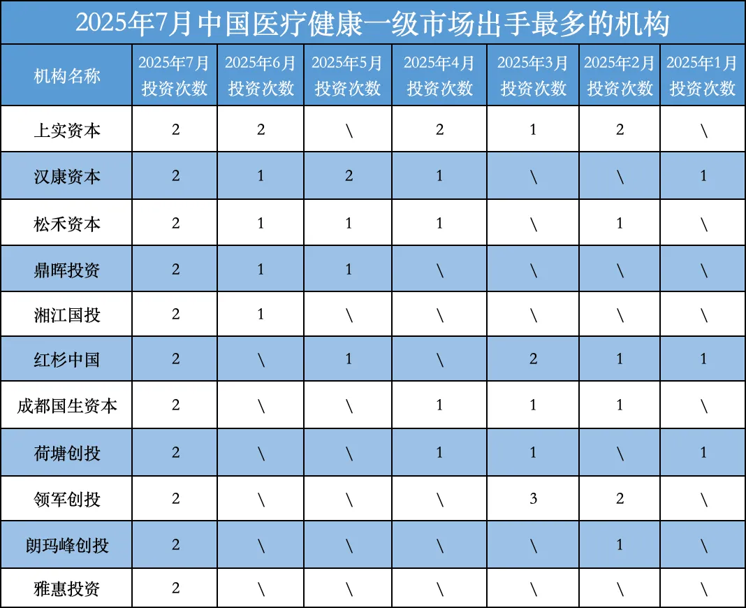 其中,出手活跃的机构有上实资本、汉康资本、松禾资本、鼎晖投资、湘江国投、红杉中国、成都国生资本、荷塘创投、领军创投、朗玛峰创投、雅惠投资等。