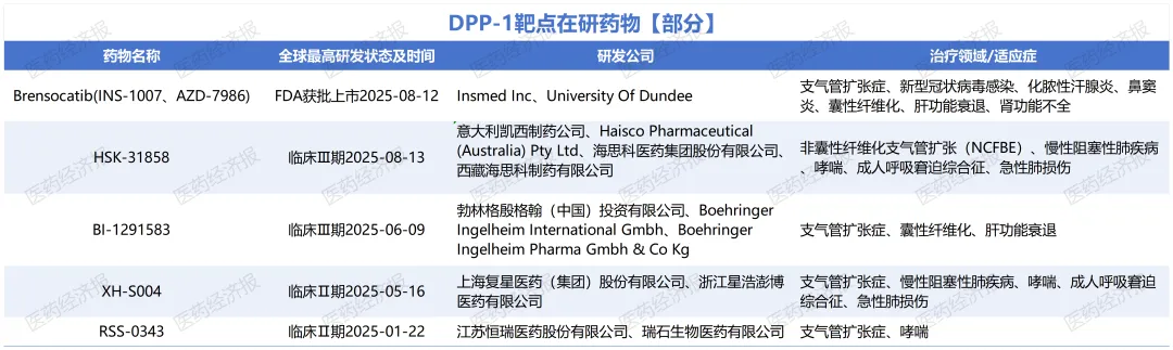 行业分析指出,Brensocatib的获批,实现了该靶点从理论到临床的跨越,预计将形成MNC与本土Biotech共同研发的格局。如今,DPP-1靶点已成为呼吸疾病治疗的新焦点,未来还将拓展新适应症。