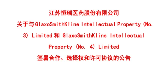 7月28日,恒瑞医药与GSK达成合作协议,将其自主研发的PDE3/4抑制剂创新药HRS-9821的全球独家权利(不包括中国)和至多11个项目的全球独家许可的独家选择权(不包括中国)有偿许可给GSK。根据协议,恒瑞医药将获得5亿美元首付款,潜在交易总额最高可达120亿美元。