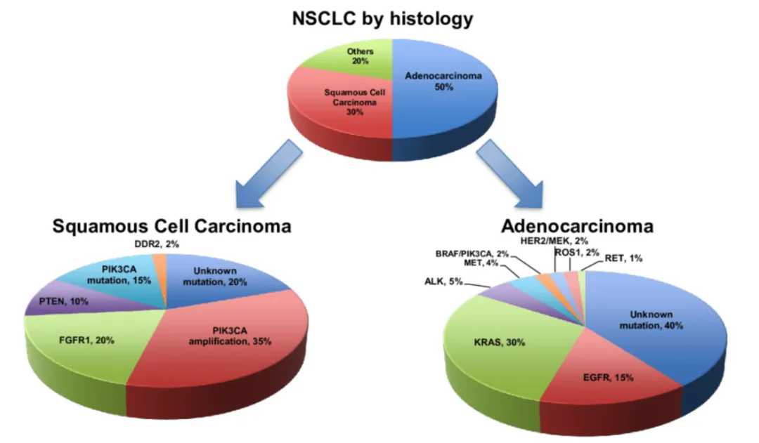 据GLOBOCAN最新数据显示,2022年全球约有超过248万新发肺癌病例,占癌症新发病例的12.4%,这其中约85%的肺癌类型为非小细胞肺癌(NSCLC)。进一步划分,NSCLC又可分为鳞状细胞癌(约30%)、肺腺癌(约50%)以及其他癌种。