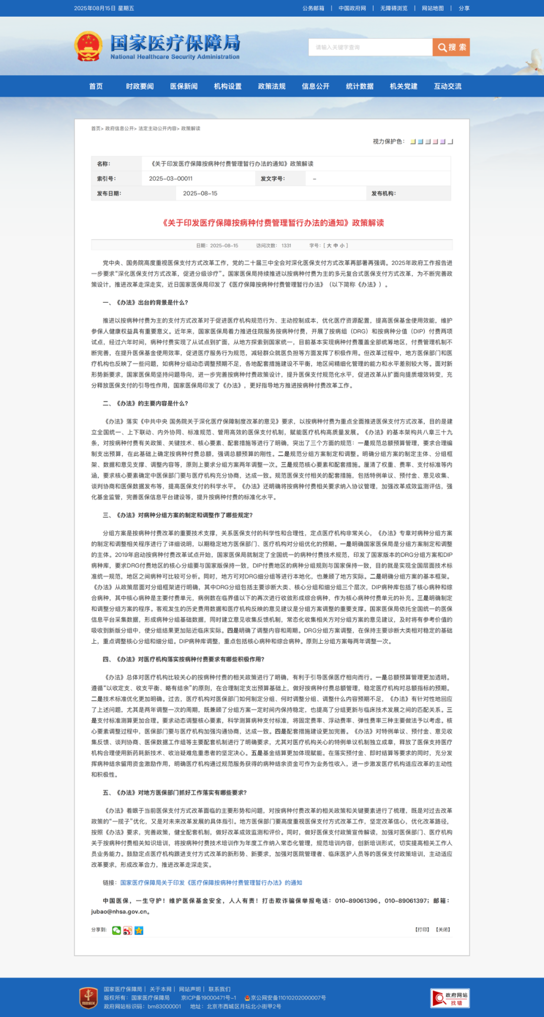 面对新形势新要求,国家医保局坚持问题导向,印发《办法》,更好指导地方推进按病种付费改革工作。