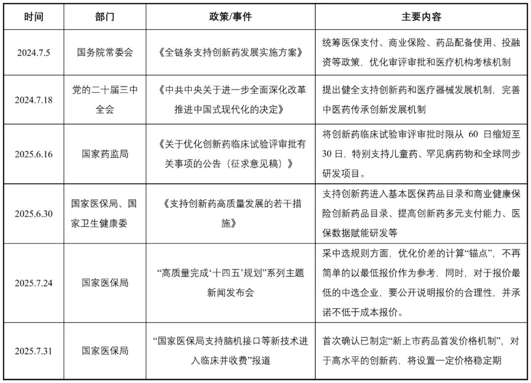 表1 2024-2025年中国出台的促进创新药发展的相关政策