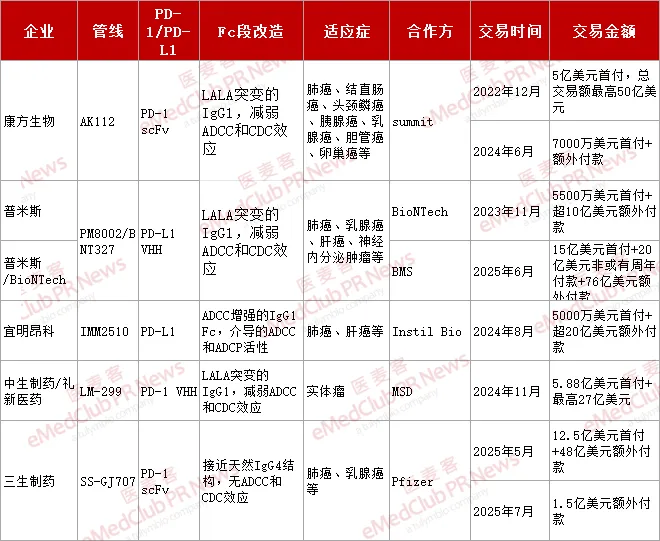 第三阶段为高价值转授权。2025 年 6 月,BioNTech 与 BMS 达成全球战略合作协议,共同开发并商业化 PM8002,潜在总交易额达 111 亿美元(15 亿美元首付+20 亿美元年付+76 亿美元里程碑)。