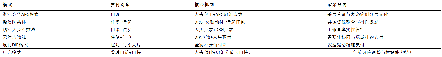 目前,全国多地根据当地实际情况,对门诊开展医保支付方式改革探索,比如浙江金华的APG(门诊病例组合)模式、濉溪县域医共体付费模式、镇江人头点数法付费模式、天津点数法付费模式、厦门分值付费以及广东普通门诊按人头付费等。