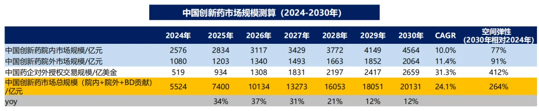 根据东吴证券测算,预计2030年中国创新药市场规模将突破20000亿元人民币,复合年增长率(CAGR)达24.1%,相比2024年,市场规模增长近264%。