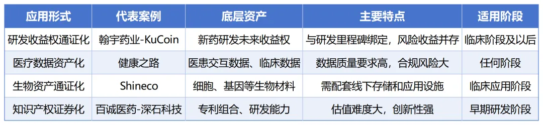 根据底层资产和业务模式的不同,医药研发RWA可以分为四种主要应用形式: