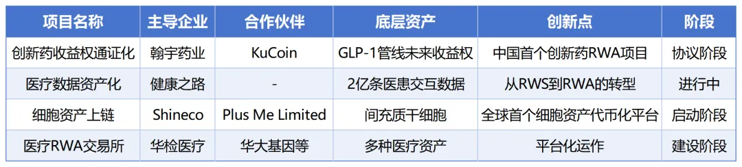 2025年以来,中国医药行业出现了一批RWA试点项目,各具特色,代表了不同的探索方向: