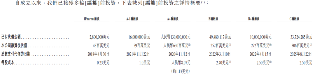应世生物成立以来经历多轮融资,其中2025年8月完成3372万美元融资,投后估值3.06亿美元。