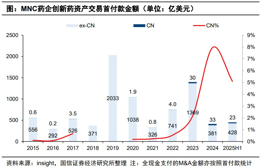 进入2025年上半年,超过50亿美元的交易仍有6笔,但其中绝大多数是授权或小型并购,真正意义上的“巨额并购”只有2个。这表明MNC的心态在变化:从“重拳收购”到“灵活补充”,它们更愿意通过可控、低风险的方式来稳健地填补研发空白。