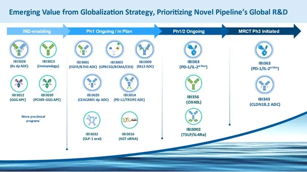 肿瘤:IBI3009(DLL3 ADC), IBI3001 (EGFR/B7H3 ADC),IBI3003(GPRC5D/BCMA/CD3),