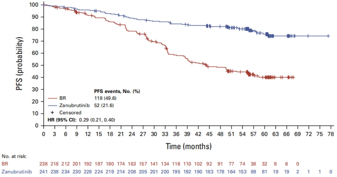 更值得注意的是,泽布替尼在PFS上正持续不断创造出更优异的成绩。