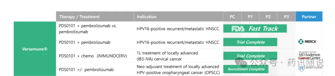 VERSATILE-002研究(NCT04260126)是一项开放标签、多中心的2期临床试验,旨在评估PDS0101联合K药治疗不可切除、复发或转移性HPV16阳性HNSCC患者安全性和有效性。