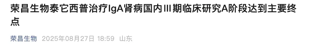 这一突破不仅有望为IgA肾病患者带来新的治疗希望,也标志着泰它西普在自身免疫性疾病领域的适应证布局再下一城。荣昌生物表示,将尽快向CDE递交该适应证的上市申请,推动药物早日惠及患者。