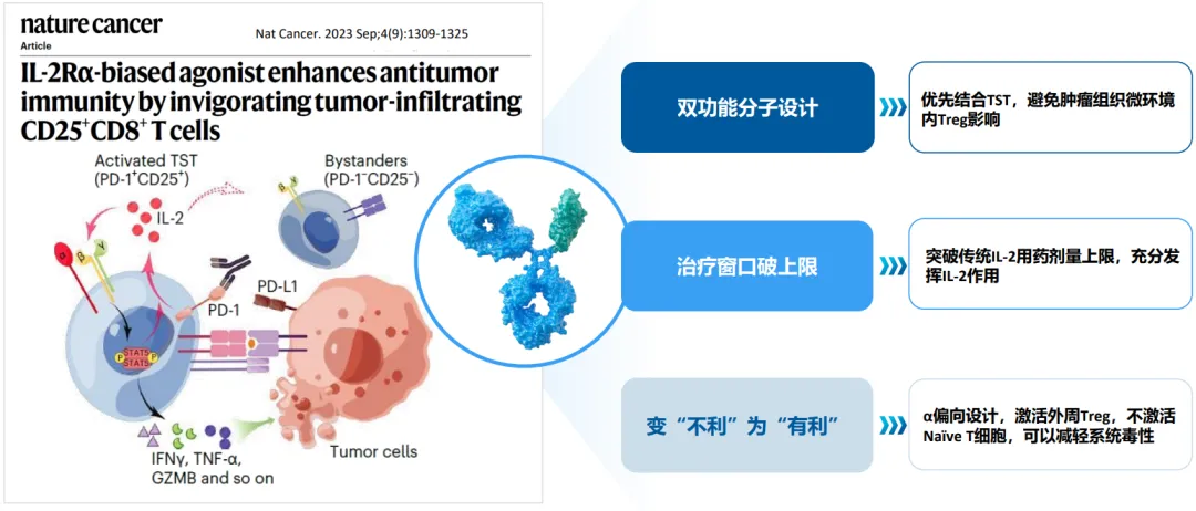 作为全球唯一的PD-1/IL-2α偏向性双抗,它凭借其独特的机制设计和前瞻性的研发思路,在全球竞争格局中占据了先发优势,也算是引领了下一代肿瘤免疫疗法的研发潮流。
