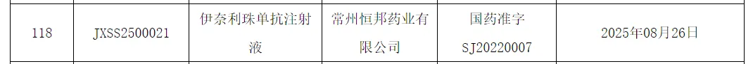 常州恒邦药业(翰森制药全资子公司)申报的伊奈利珠单抗注射液(商品名:昕越®)新适应症获批上市。用于免疫球蛋白 G4 相关疾病(IgG4-RD)成人患者的治疗。