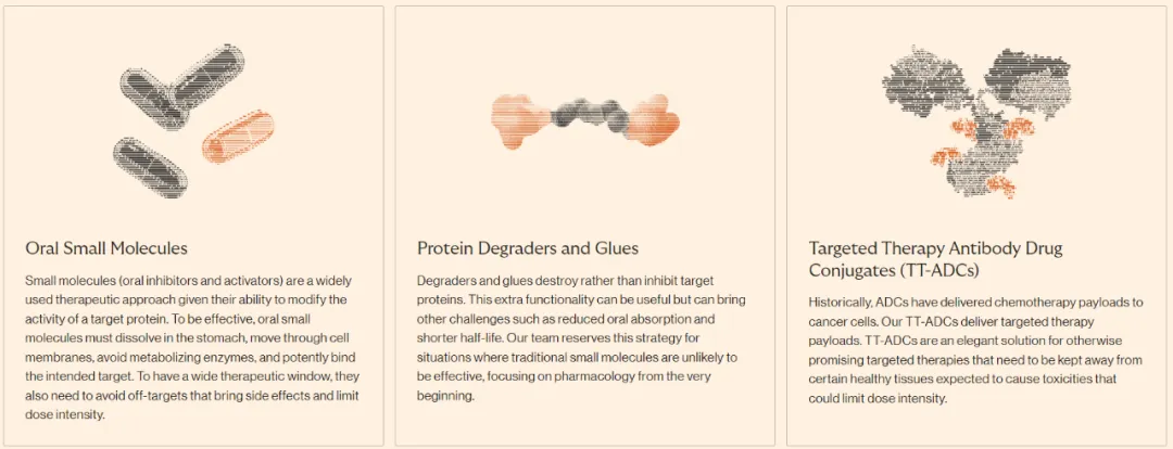 Treeline的研发团队应用先进的计算工具来优化研发流程、加速项目推进。公司聚焦的治疗领域涵盖癌症、神经疾病以及自身免疫性疾病。研发形式包括小分子、蛋白降解剂,以及靶向治疗抗体偶联药物(TT-ADC)。