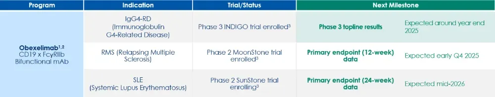 i) obexelimab治疗IgG4-RD的关键III期NDIGO试验达到预设成功标准(顶线数据预计2025年底读出);