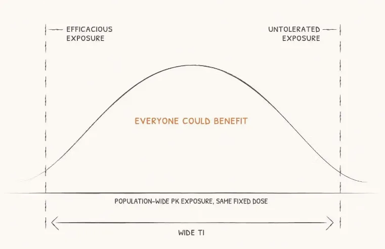 index)。所有的项目都必须根据治疗指数(TI)进行竞争。TI是一个集药理学(ADME)、安全性和有效性于一体的概念,还融合了靶点驱动因素和药物设计特征。