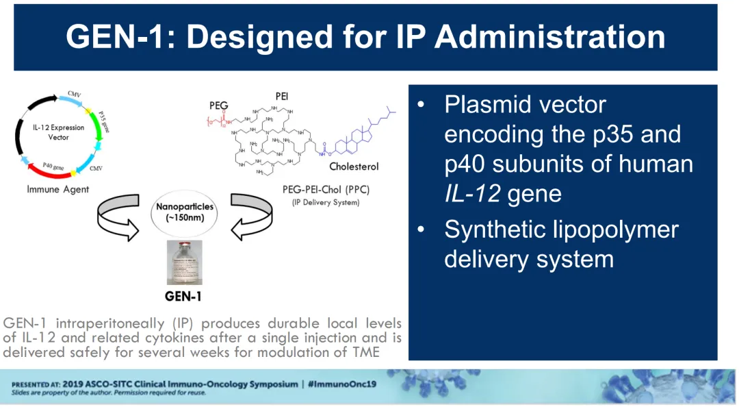 先说前面提到Imunon公司的IL-12基因疗法IMNN-001,其由专有的TheraPlas平台技术开发的IL-12 DNA质粒载体,包裹在纳米颗粒递送系统中,能够在细胞转染后持续、局部分泌IL-12蛋白。