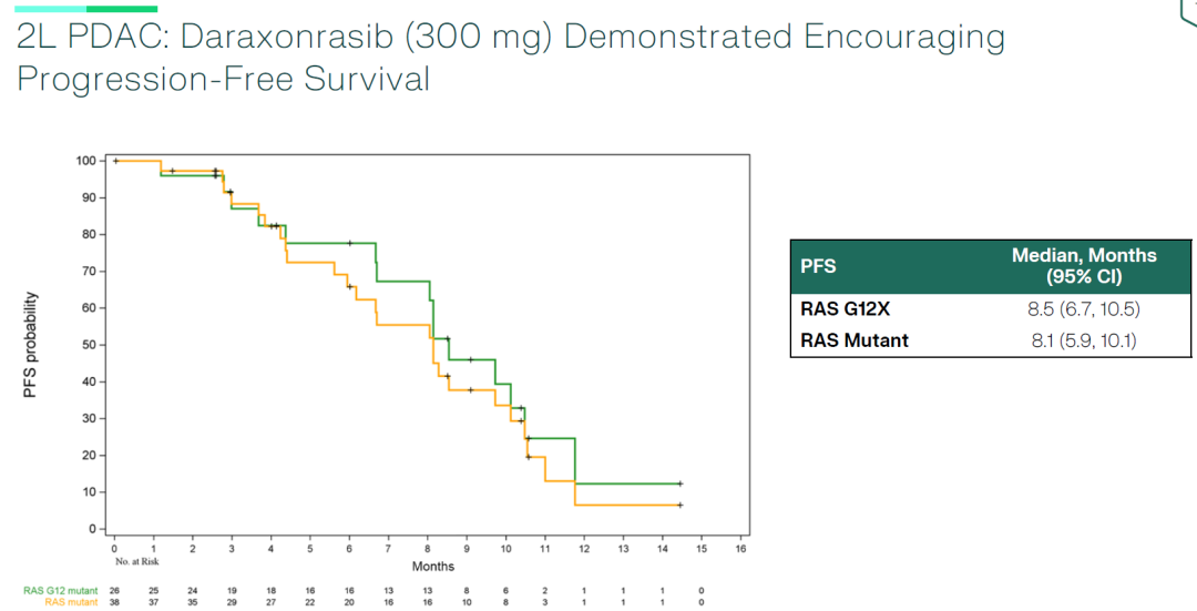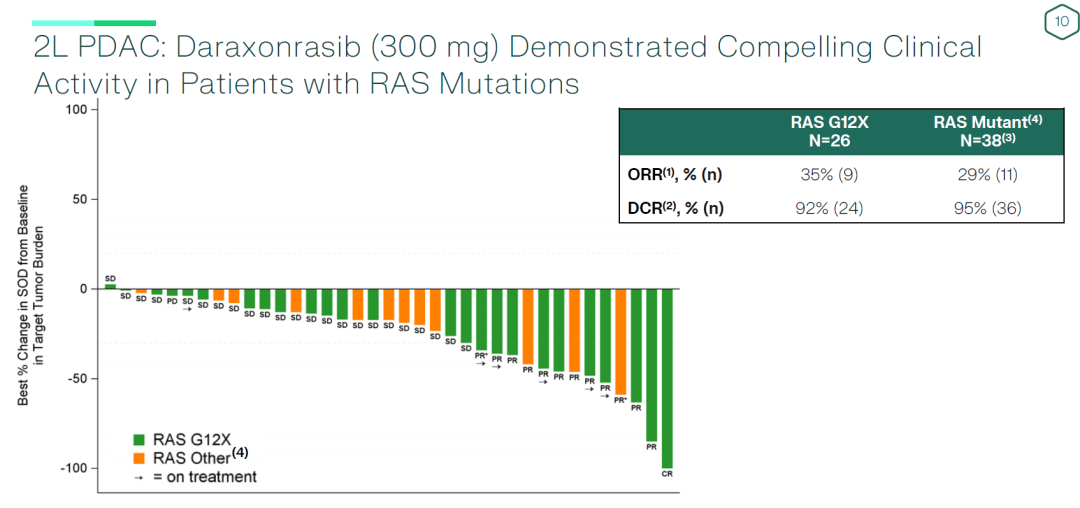 Daraxonrasib单药二线治疗胰腺癌RAS G12X突变、任何RAS突变的ORR分别为35%、29%,DCR分别为92%、95%。